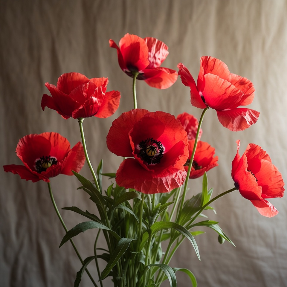 arrangement, beauty, bloom, centerpiece, decor, display, flowers, fresh, garden, home, indoor, nature, petals, plant, poppies, red, spring, summer, table, vase