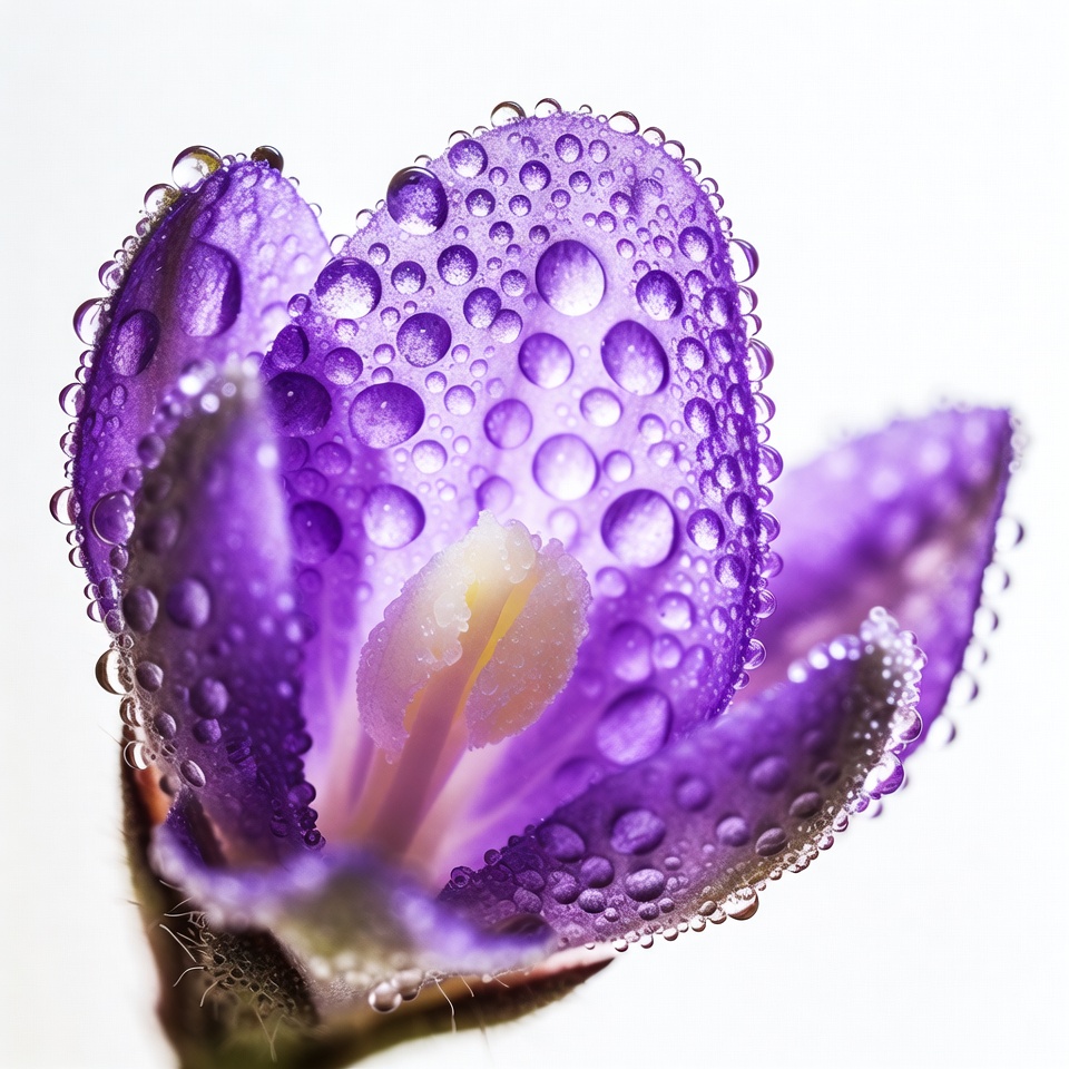 Purple flower with water droplets close-up