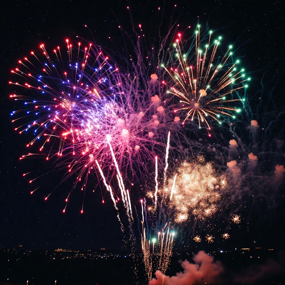Colorful fireworks explode at night