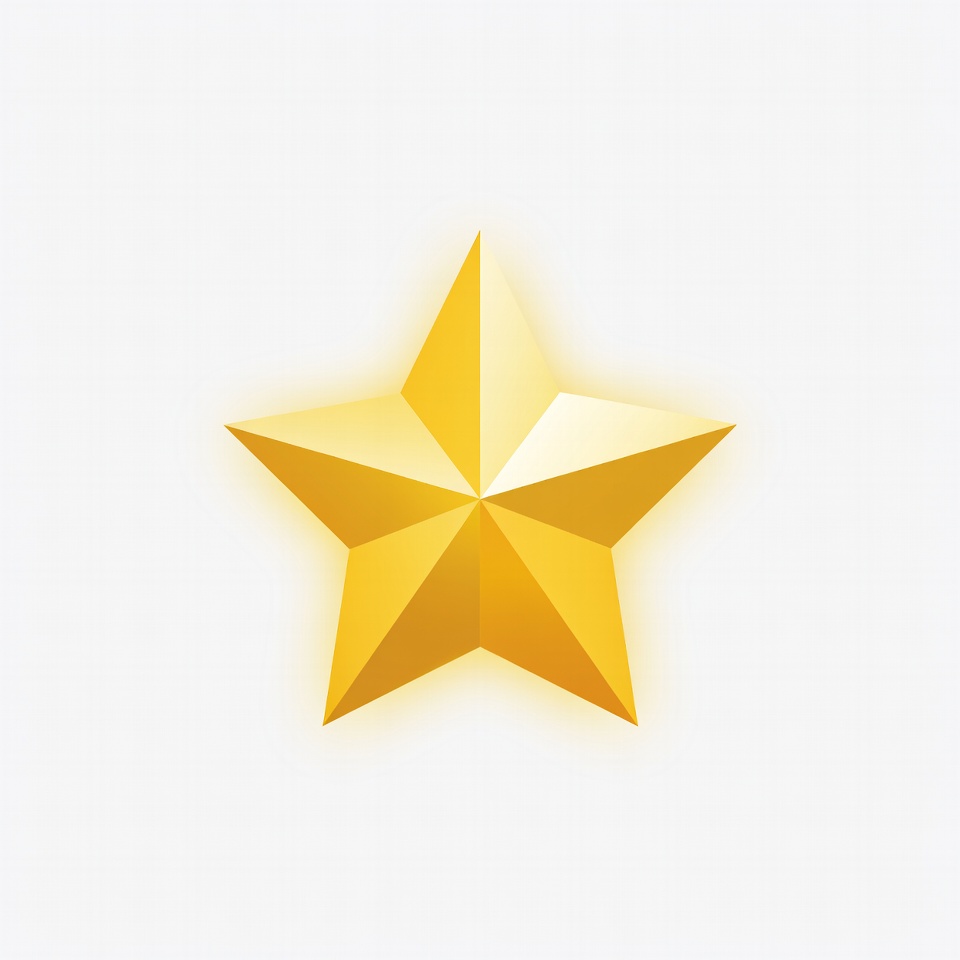 A bright yellow star shape stands alone on a plain white background. The star is symmetrical with pointed edges and a 3D effect.