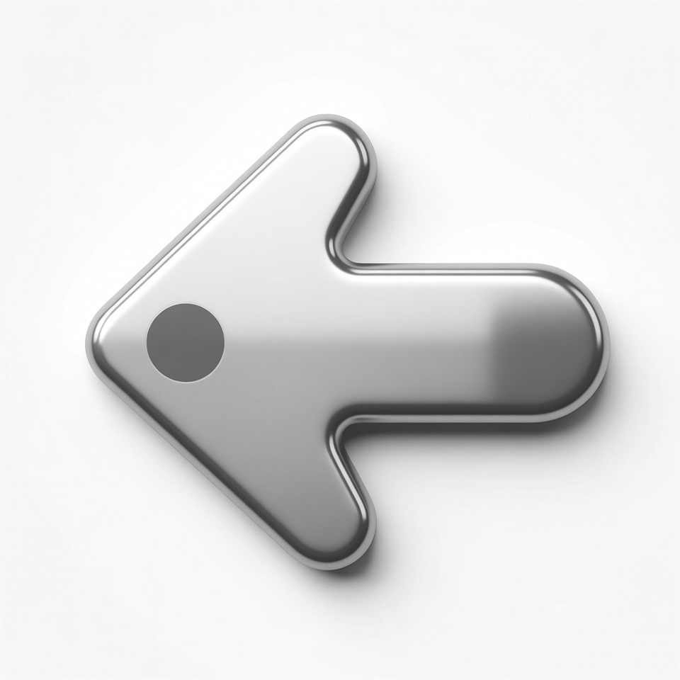 arrow, artwork, circular dot, clarity, contrast, design, direction, graphic, icon, left, metallic, minimal, modern, pointer, shape, shiny, signaling, silver, sleek, white background