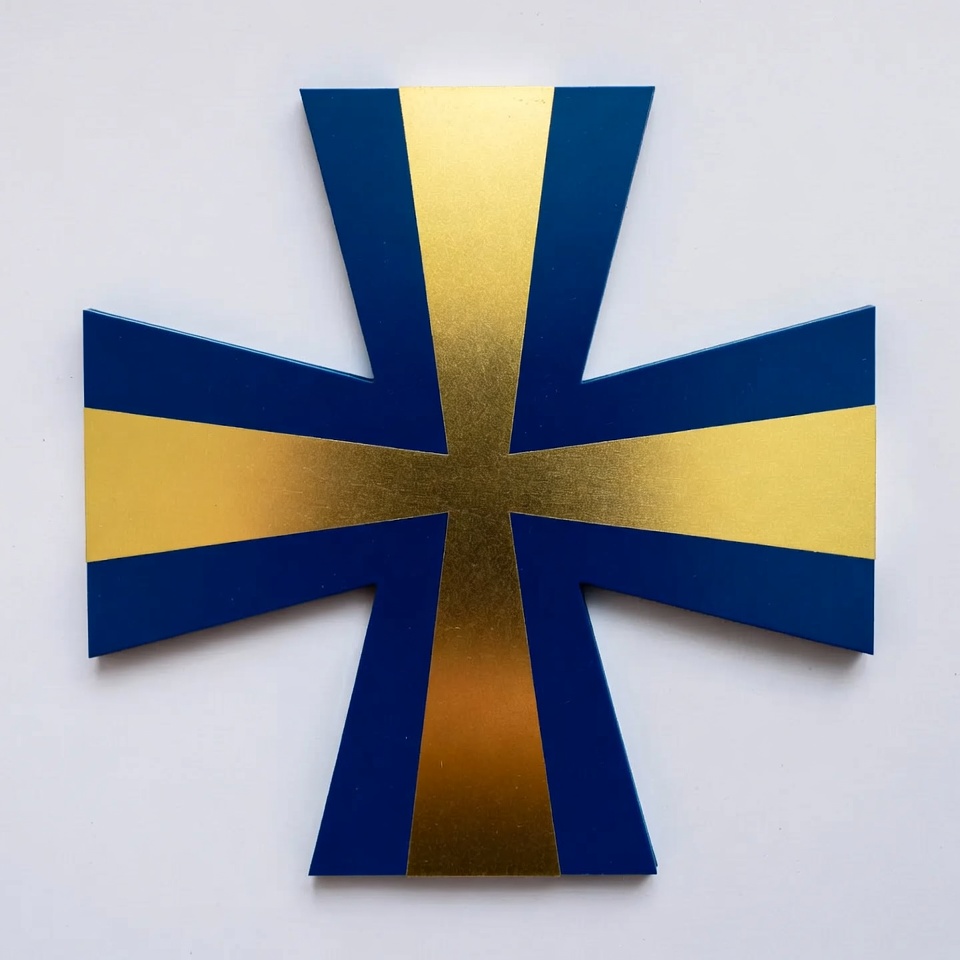 A blue and gold cross design on a solid background. This symbol represents history and is often used in cultural contexts.