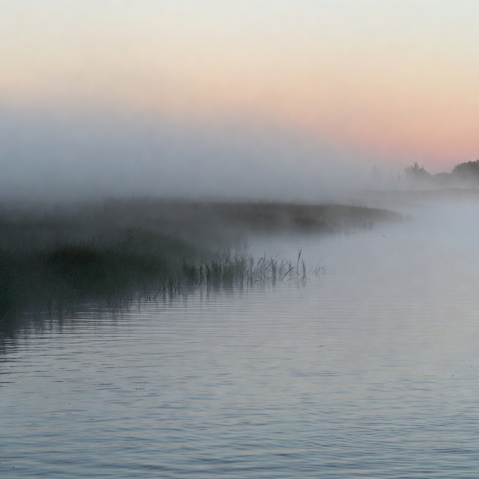 atmosphere, calm, dawn, environment, fog, grass, landscape, mist, morning, nature, outdoor, peaceful, reflection, river, scenery, sunrise, trees, view, water, weather
