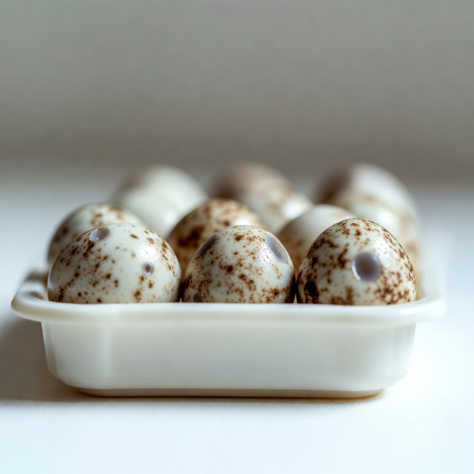 Quail eggs in a white tray
