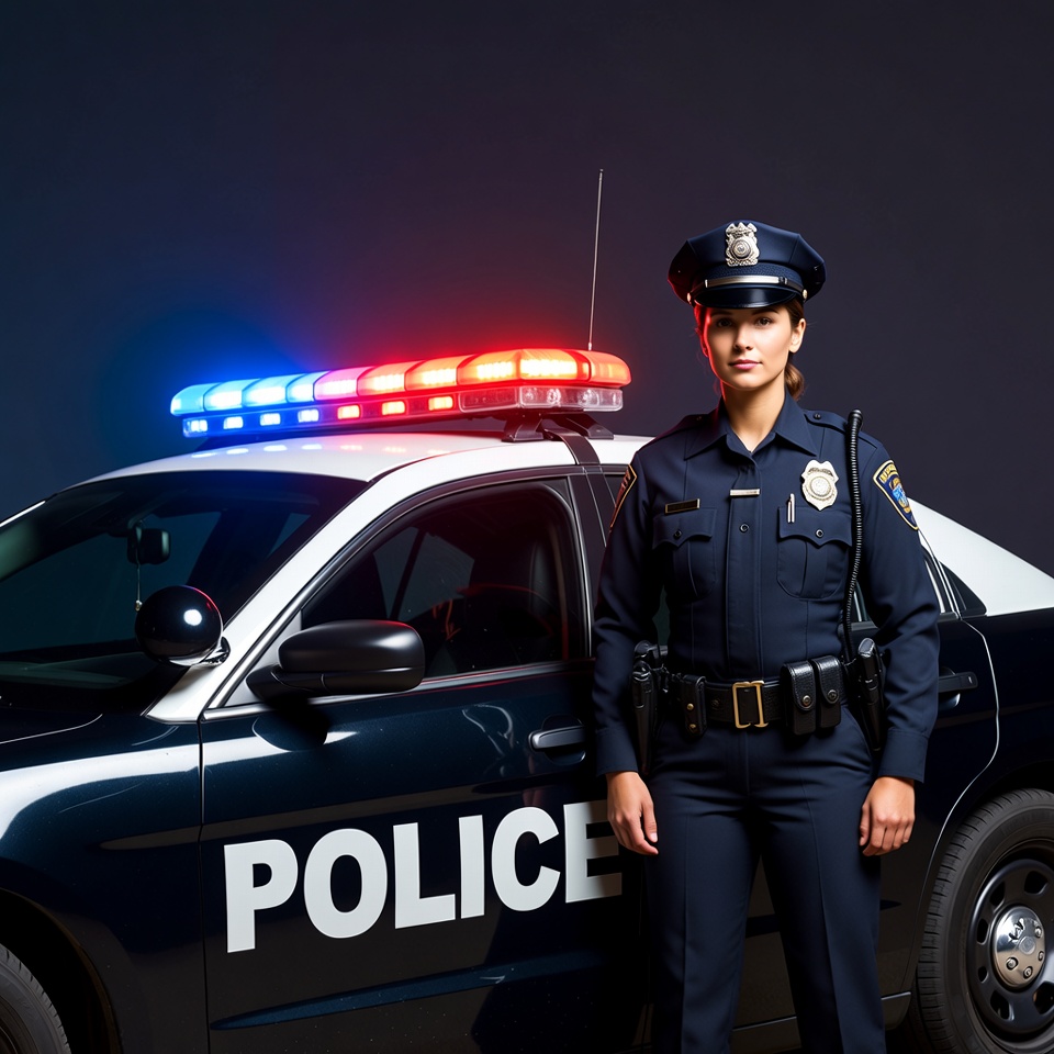 authority, car, city, community, emergency lights, law enforcement, night, officer, patrol car, police, professionalism, response, safety, security, service, standing, training, uniform, vehicle, vigilance