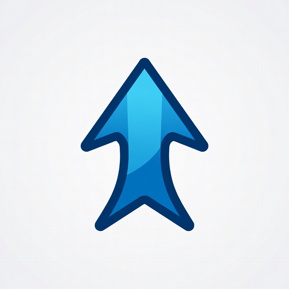 A blue arrow pointing up. It is often used for navigation purposes. The arrow has a clear and simple style.