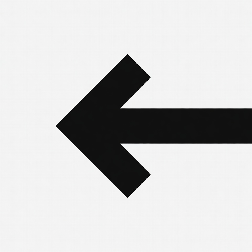A large black arrow is pointing to the left on a plain white background. The design is simple and clear, showing direction and guidance.