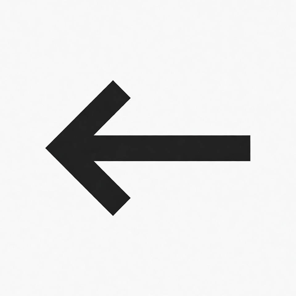A black arrow points left against a light background. The design is simple and clearly shows the direction of left.