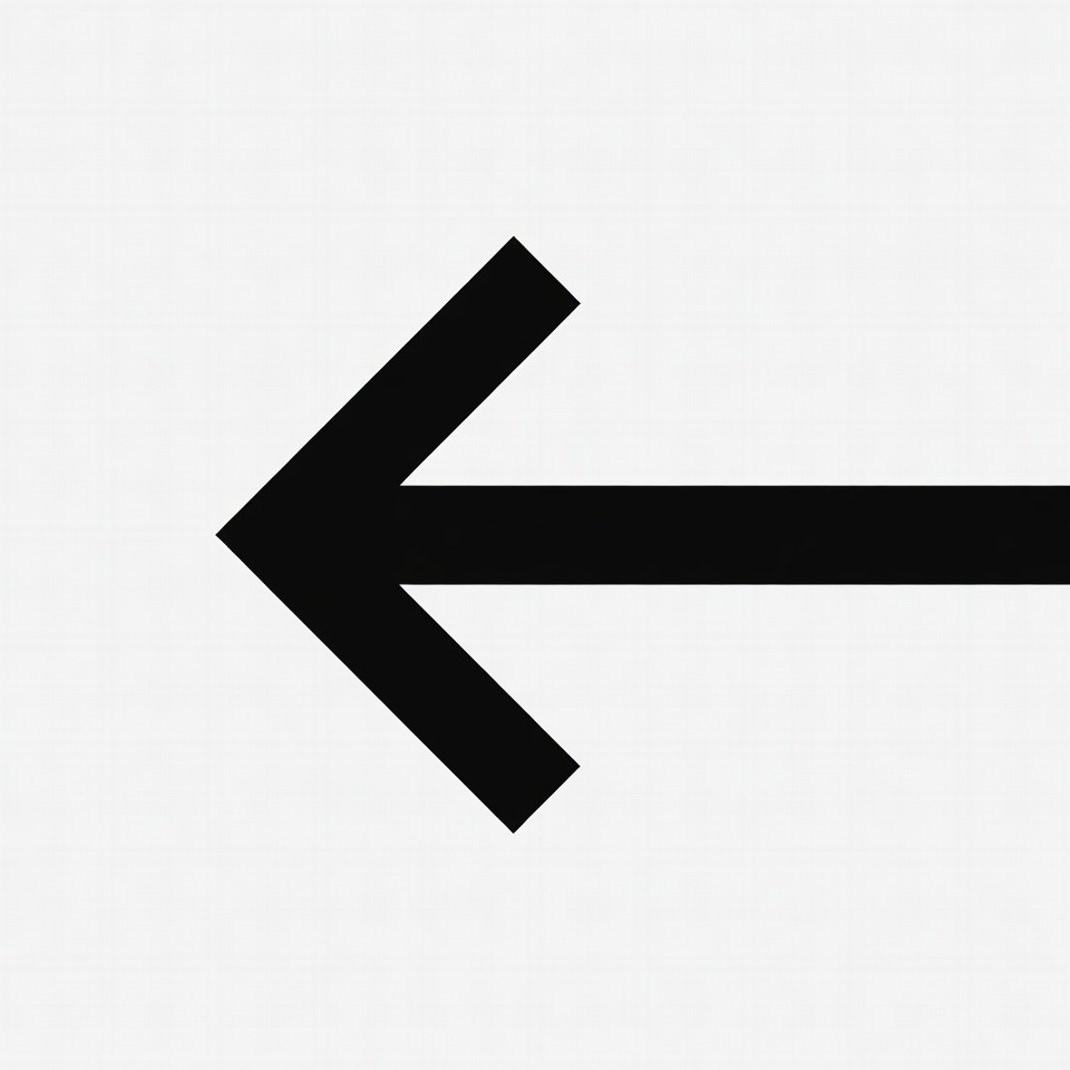 A bold black arrow is directed to the left on a white background. It symbolizes direction or instruction in design.