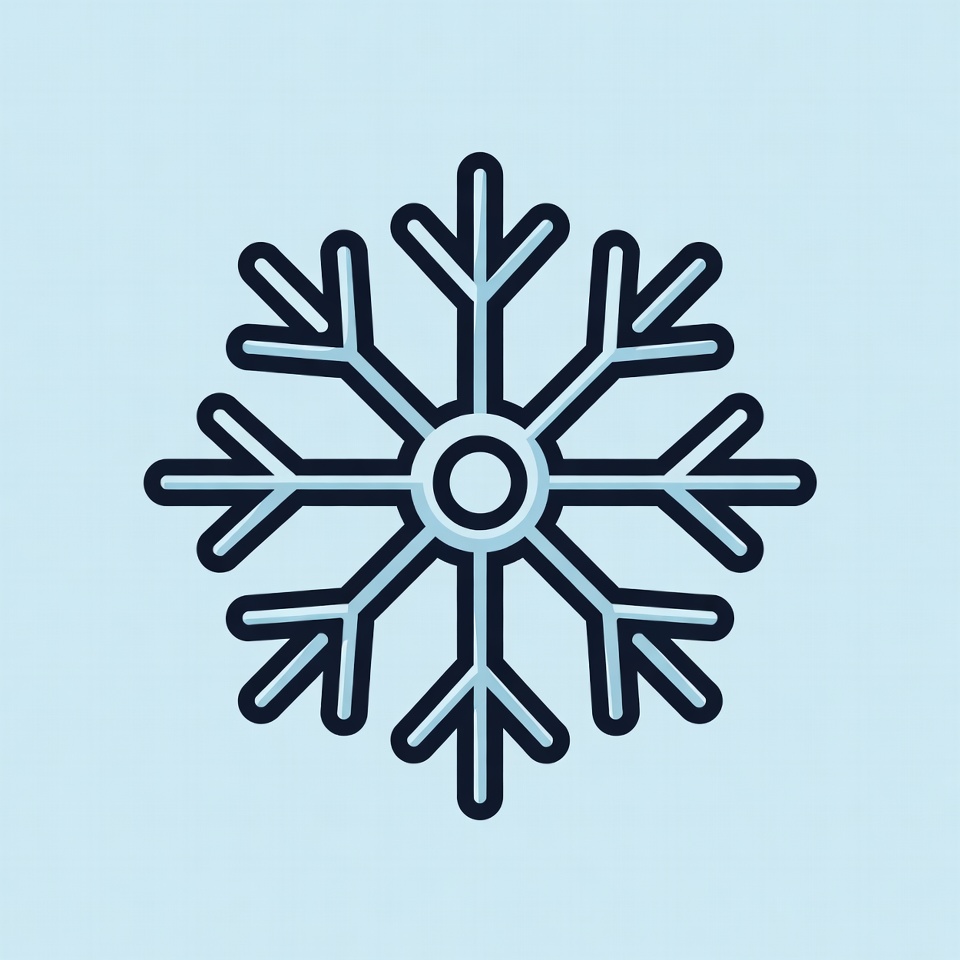 A simple snowflake graphic shows detailed lines and shapes on a pale blue background. The design features symmetry and clarity.