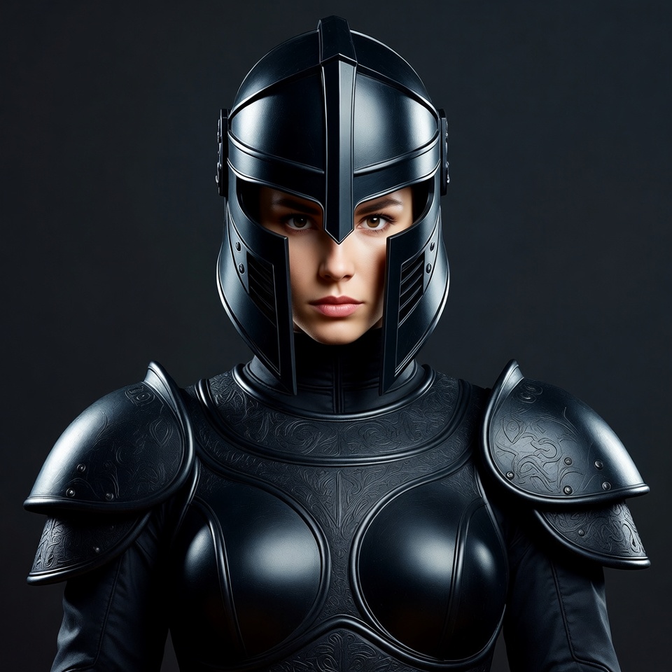 armor, battle, black, character design, costume, dark background, design, details, fantasy, figure, helmet, historical, knight, medieval, metal, portrait, protector, serious expression, strength, warrior