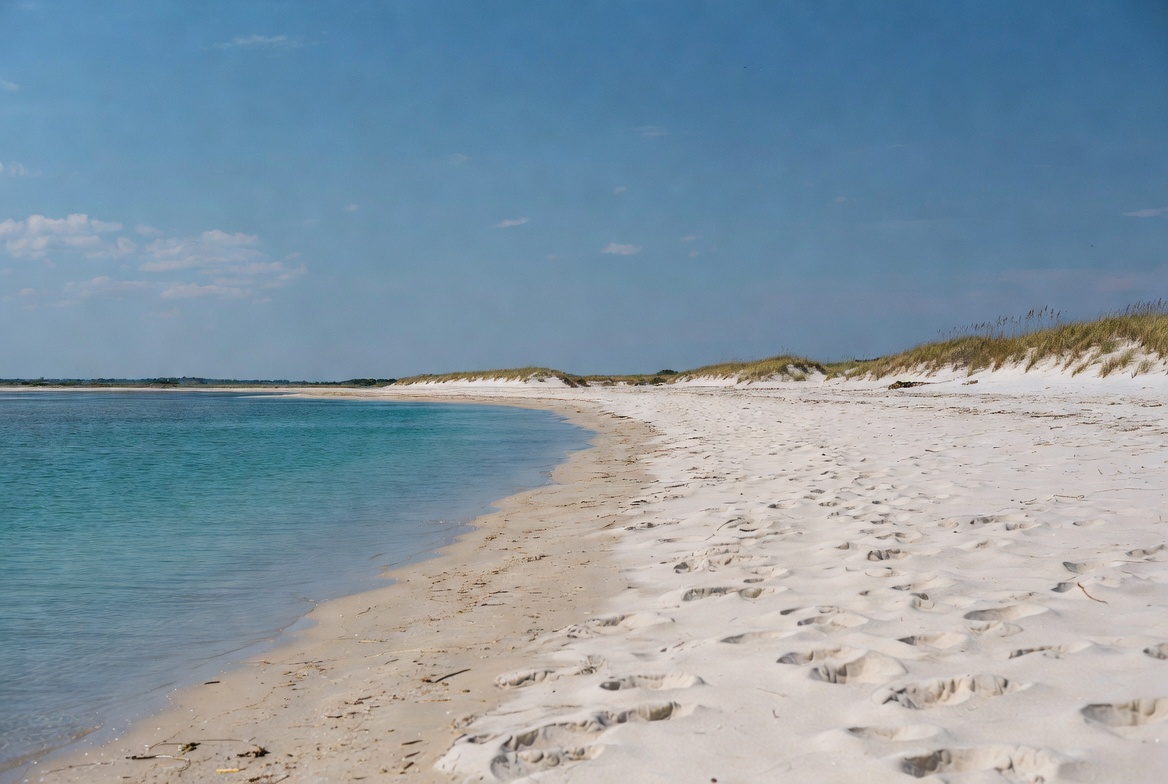 beach, blue, coast, dunes, grass, horizon, landscape, nature, outdoor, sand, scene, sea, shoreline, sky, summer, sunny, travel, vacation, water, waves