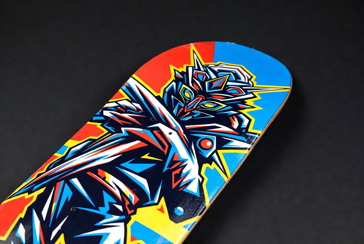 art, character, colors, craftsmanship, creativity, deck, design, display, entertainment, fun, graphic, hobby, illustration, skateboard, skateboard culture, skateboarding, sports, toys, urban, youth
