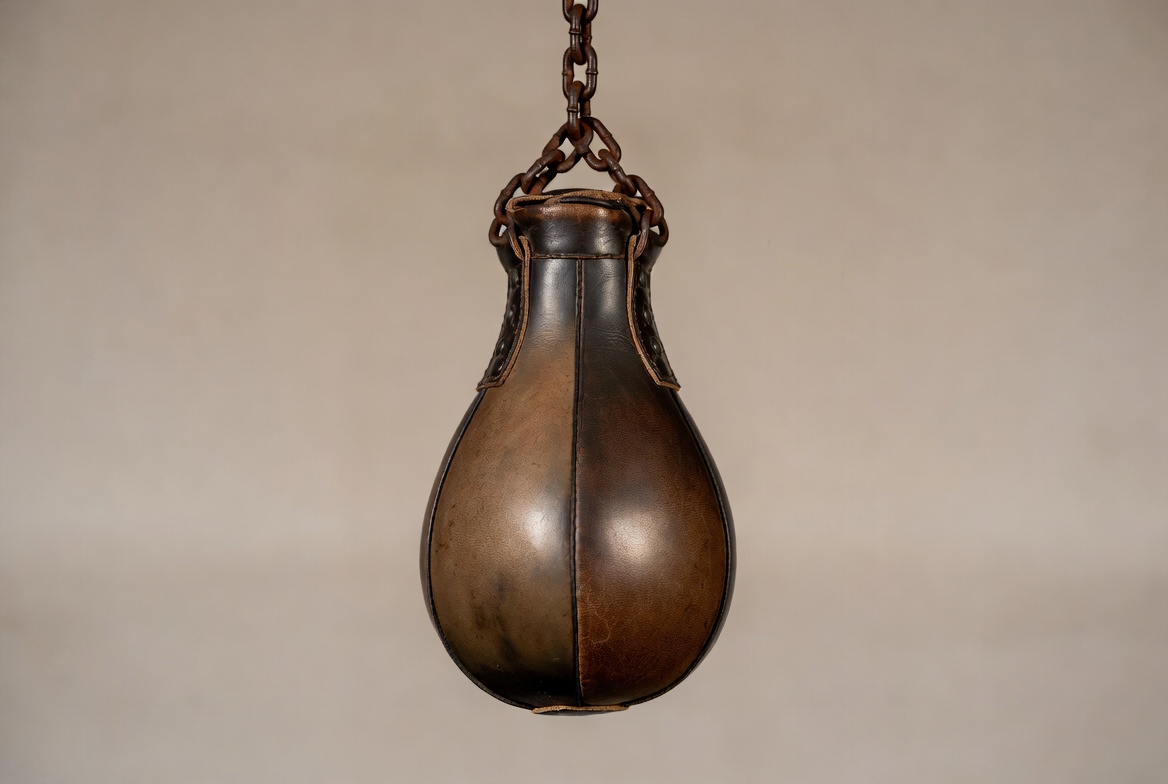 Hanging punching bag in a gym