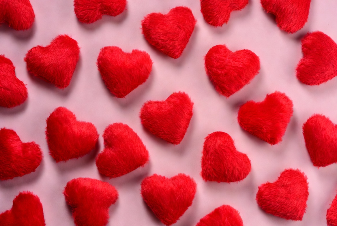Valentine, background, celebration, cheerful, color, craft, decoration, design, fabric, fun, hearts, love, pattern, pink, red, scattered, small, soft, surface, texture