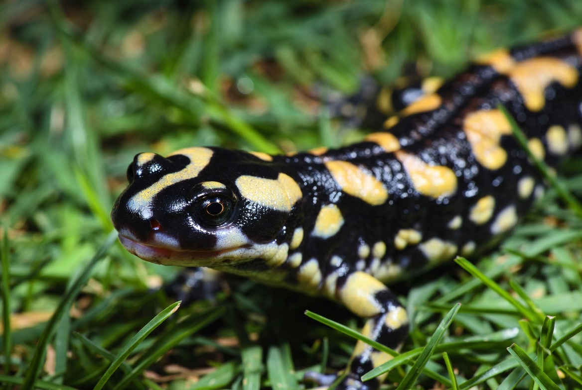 Salamander on green grass field