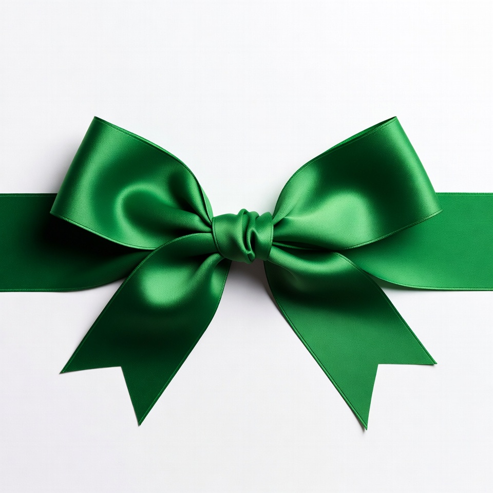 accessories, adornment, artistry, bow, celebration, craft, decoration, design, elements, event, fabric, gift wrap, green ribbon, knot, party supplies, present, style, textile, tying, white background