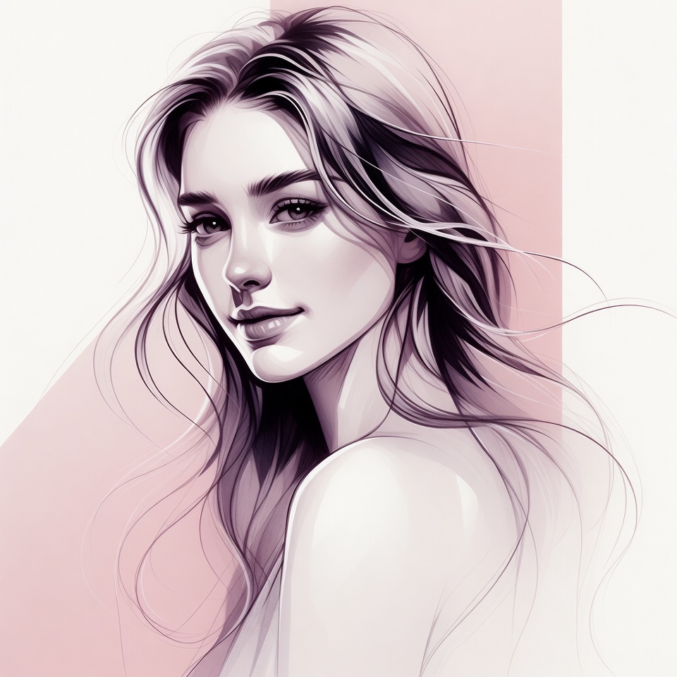 aesthetic, art, beauty, beauty illustration, close-up, creativity, drawing, expression, face, fashion, female figure, graphic design, hairstyle, long hair, modern art, portrait, simple design, soft colors, wall art, woman