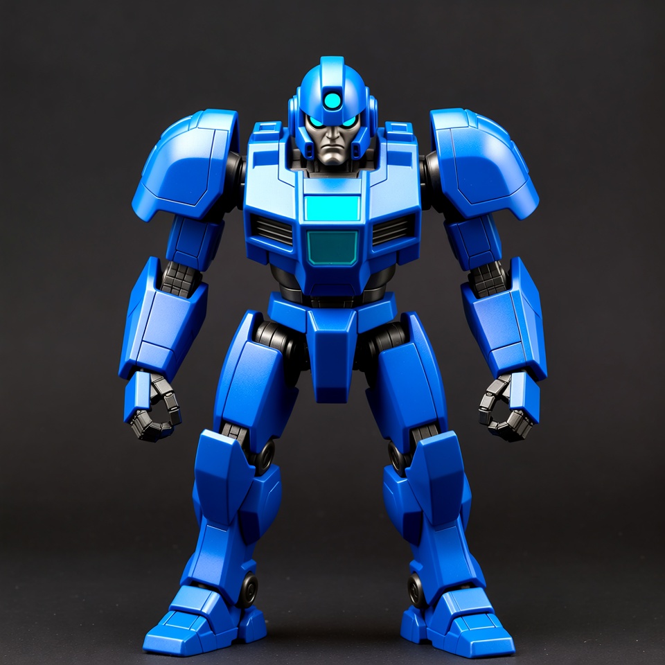 action, blue, character, collection, collector, craftsmanship, decoration, design, detailed, display, figure, hobby, merchandise, model, plastic, pose, robot, standing, toy, vintage