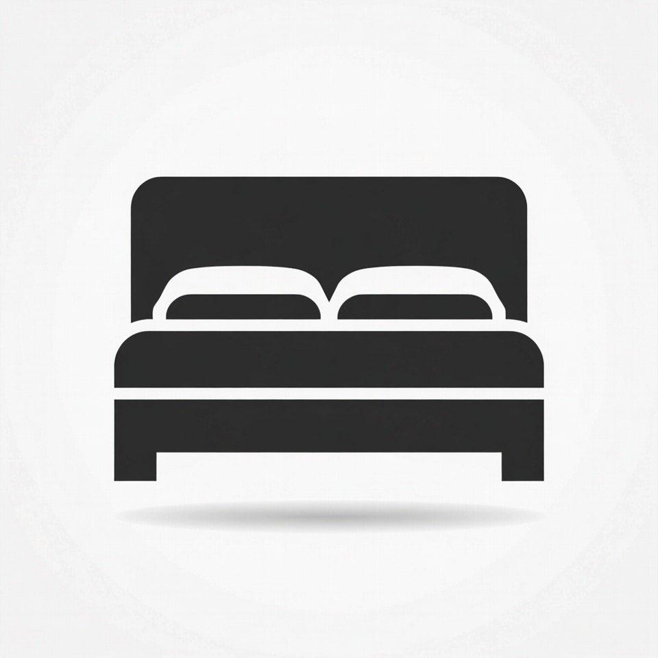 A black bed with two pillows sits on a white background, offering a minimalistic design for a bedroom setting.