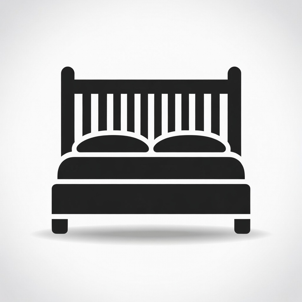 A bed with a headboard and two pillows sits on a plain surface. This arrangement shows a focus on basic furniture design without distractions.