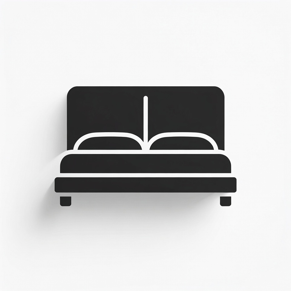 A bed with a simple design shows two pillows and a headboard. The bed stands on four legs and is shown in black color.