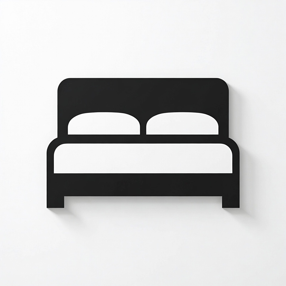 A simple bed design with a black frame and white bedding. It is suitable for a modern bedroom setup or interior decor.