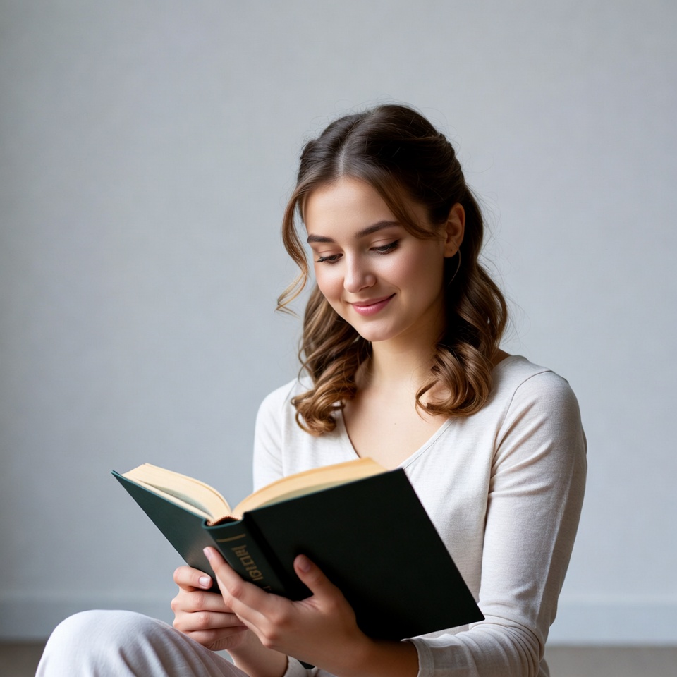 Reading a book in a simple room