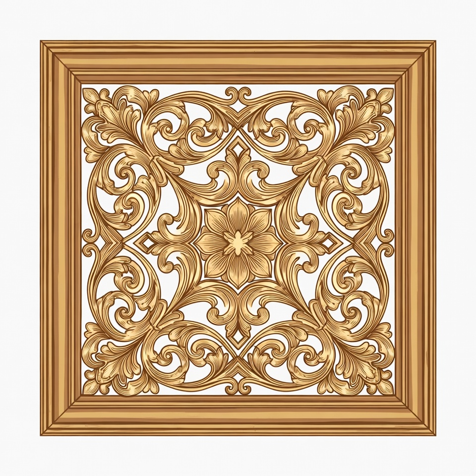 art, craftsmanship, craftsmanship details, decorative piece, design, detailed carving, floral pattern, home decor, interior design, intricate work, natural wood, nature inspiration, ornate design, patterns, square frame, symmetry, texture, vintage style, wall art, wood carving