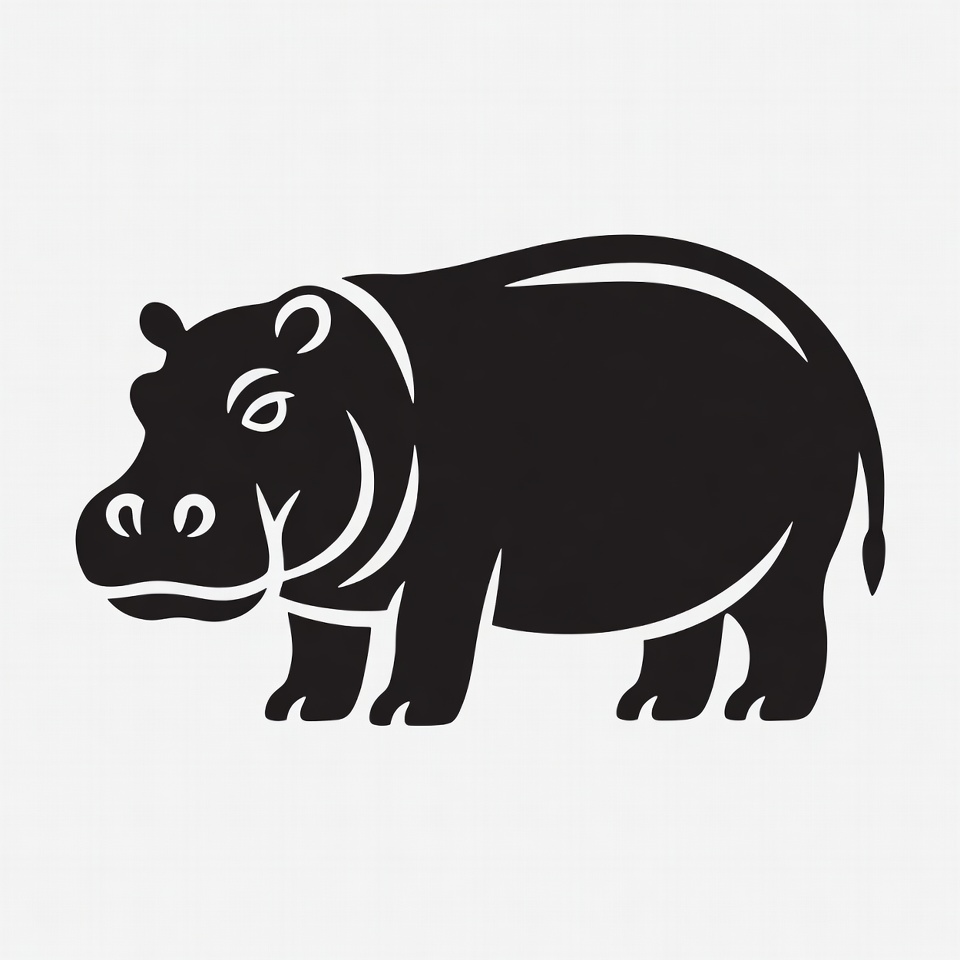 A hippo poses on a flat surface, showcasing its round body and unique features. The scene clearly depicts the animal's form and presence.
