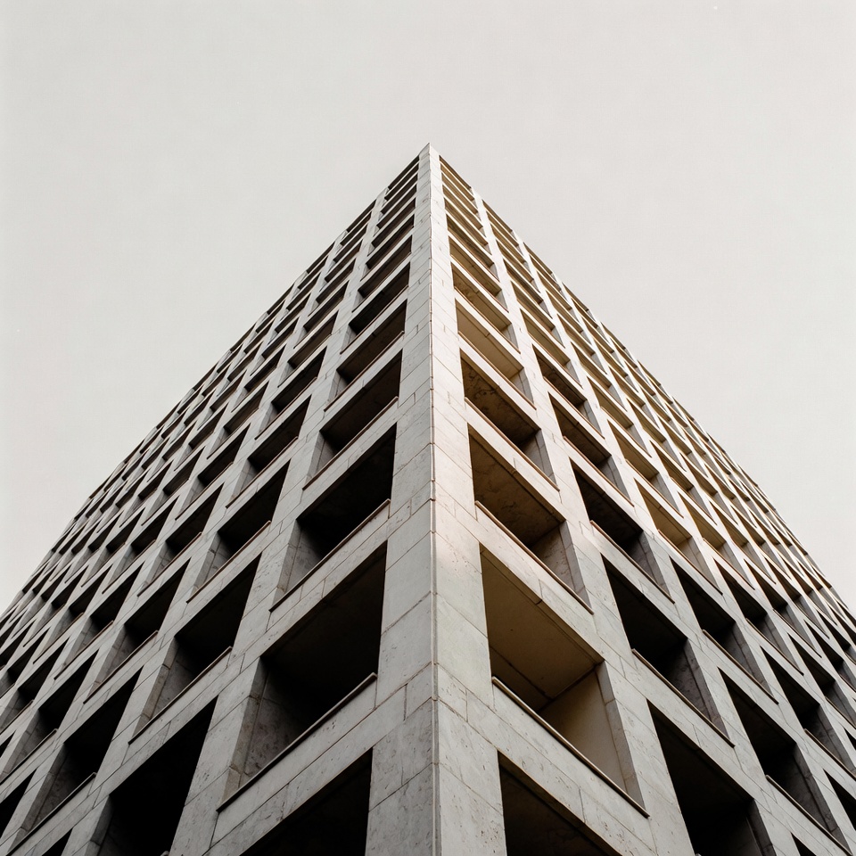 angle, architecture, building, city, concrete, construction, design, exterior, facade, geometric, height, lines, minimalism, modern, perspective, skyline, square, structure, urban, windows