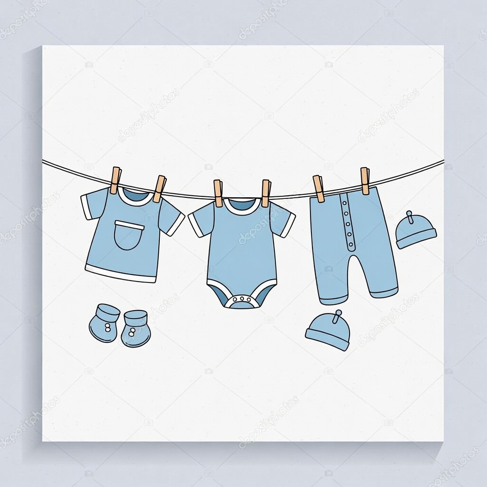 baby clothes, blue, booties, casual, childhood, clothesline, cute, domestic, drying, fashion, hanging, hat, infant wear, laundry, pants, shirt, simple design, sunlight, textile, warm