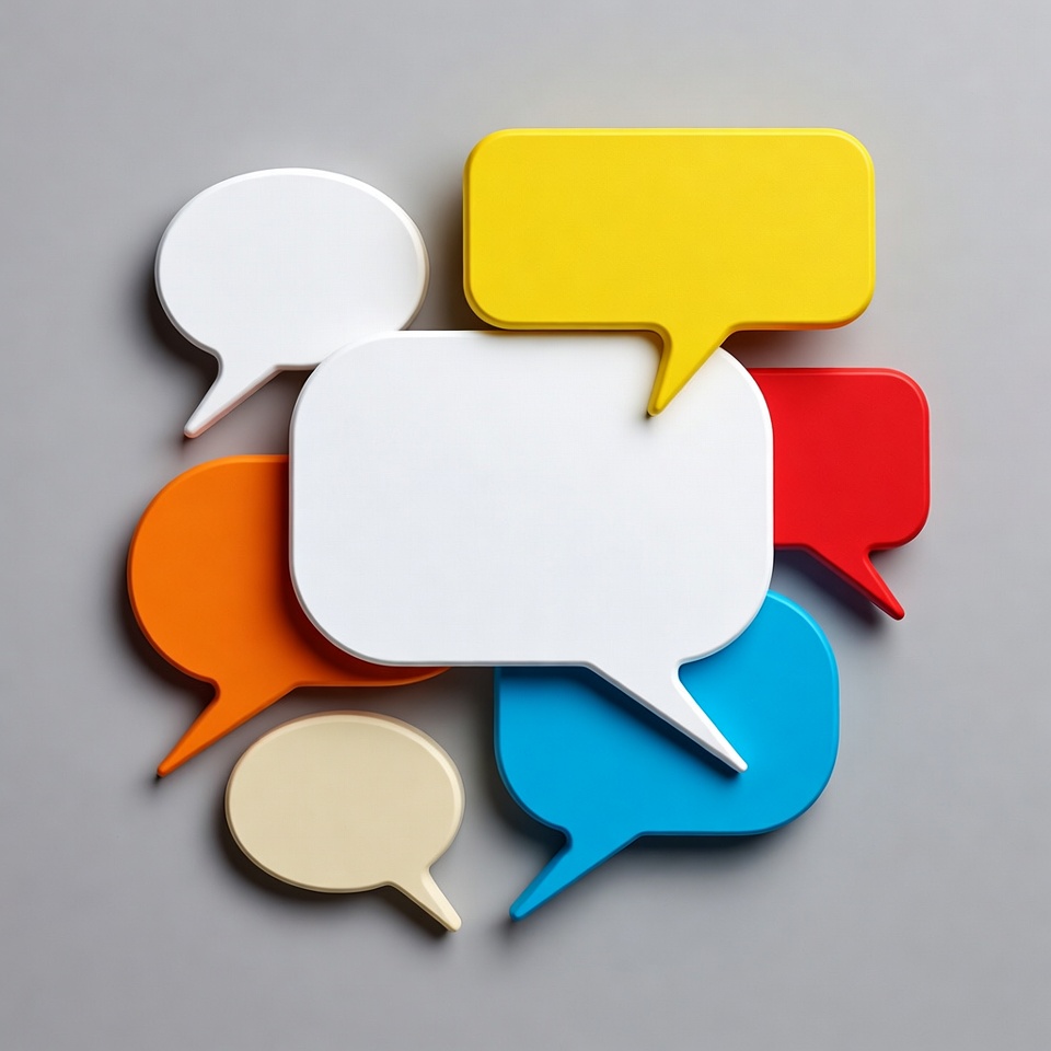 Colorful speech bubbles on a gray background