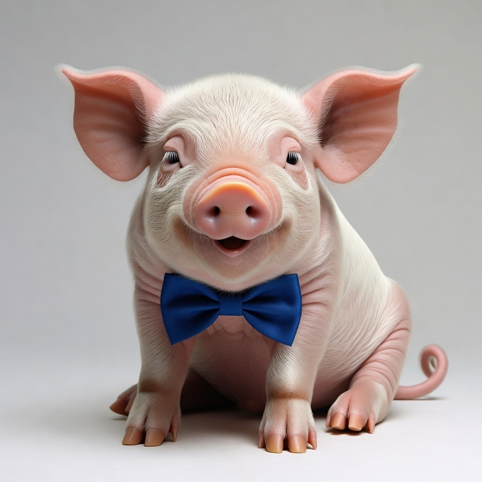 Pig in a blue bow tie