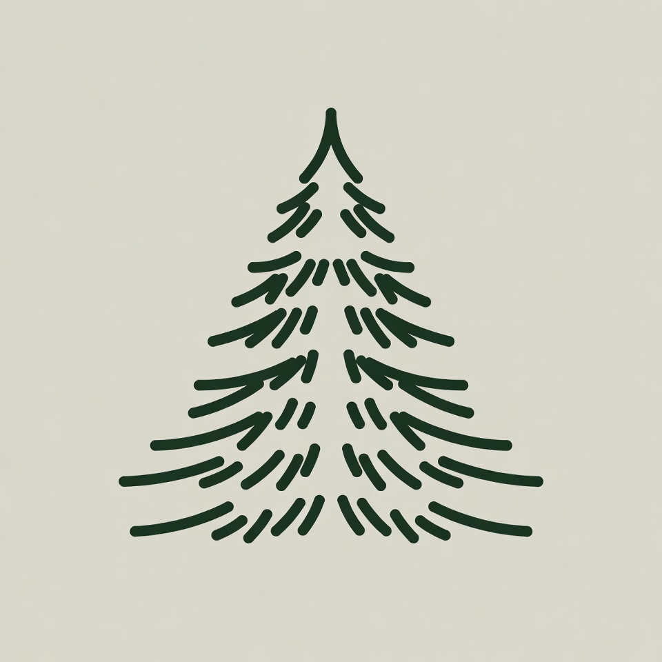 artwork, decoration, decorative, design, environment, foliage, forest, graphic, green, illustration, minimalism, nature, outline, pine tree, plant, seasonal, shape, simple, sketch, tree branches
