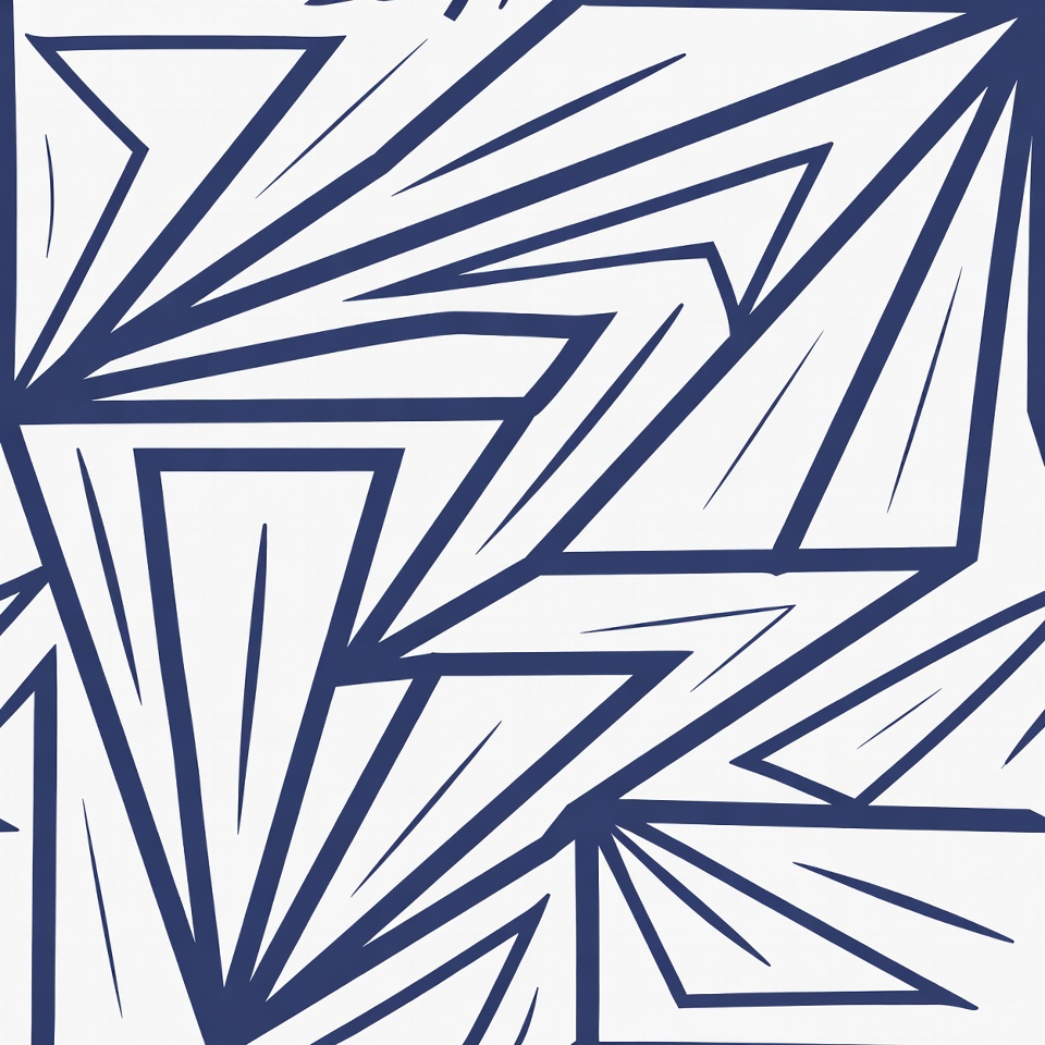 Geometric shapes create a dynamic pattern on a white background. Lines and angles intersect in various directions and forms.