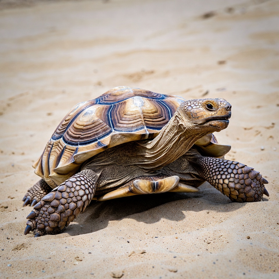 Tortoise walking on sandy beach