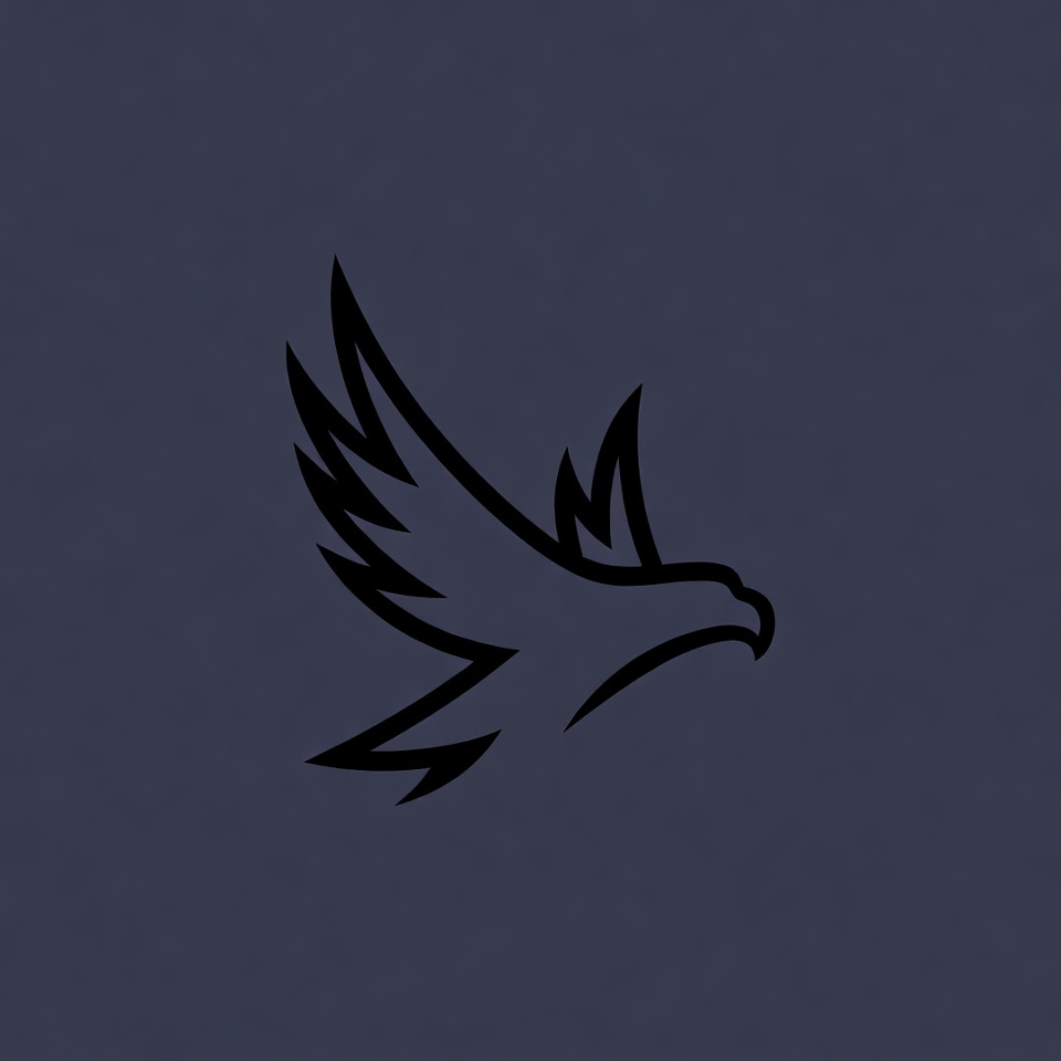 A black silhouette of an eagle is shown against a dark background. The eagle appears to be in flight, illustrating power and freedom.