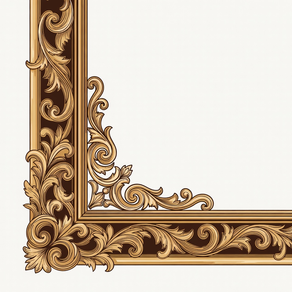 art, background, brown, classic, corner, corner piece, craftsmanship, decorative, design, detail, floral, frame, gold, illustration, line work, ornate, patterns, swirl, vintage, woodwork