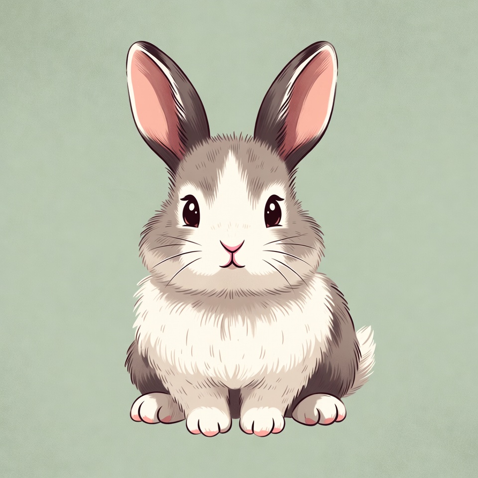 adorable, animal, background, bunny, character, cute, ears, expression, fluffy, fur, green, illustration, nature, paws, pet, playful, rabbit, simple, sitting, small