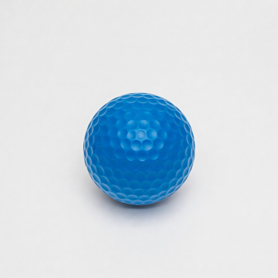 A blue ball with a textured surface sits on a white background. The ball has a round shape and is smooth to touch.