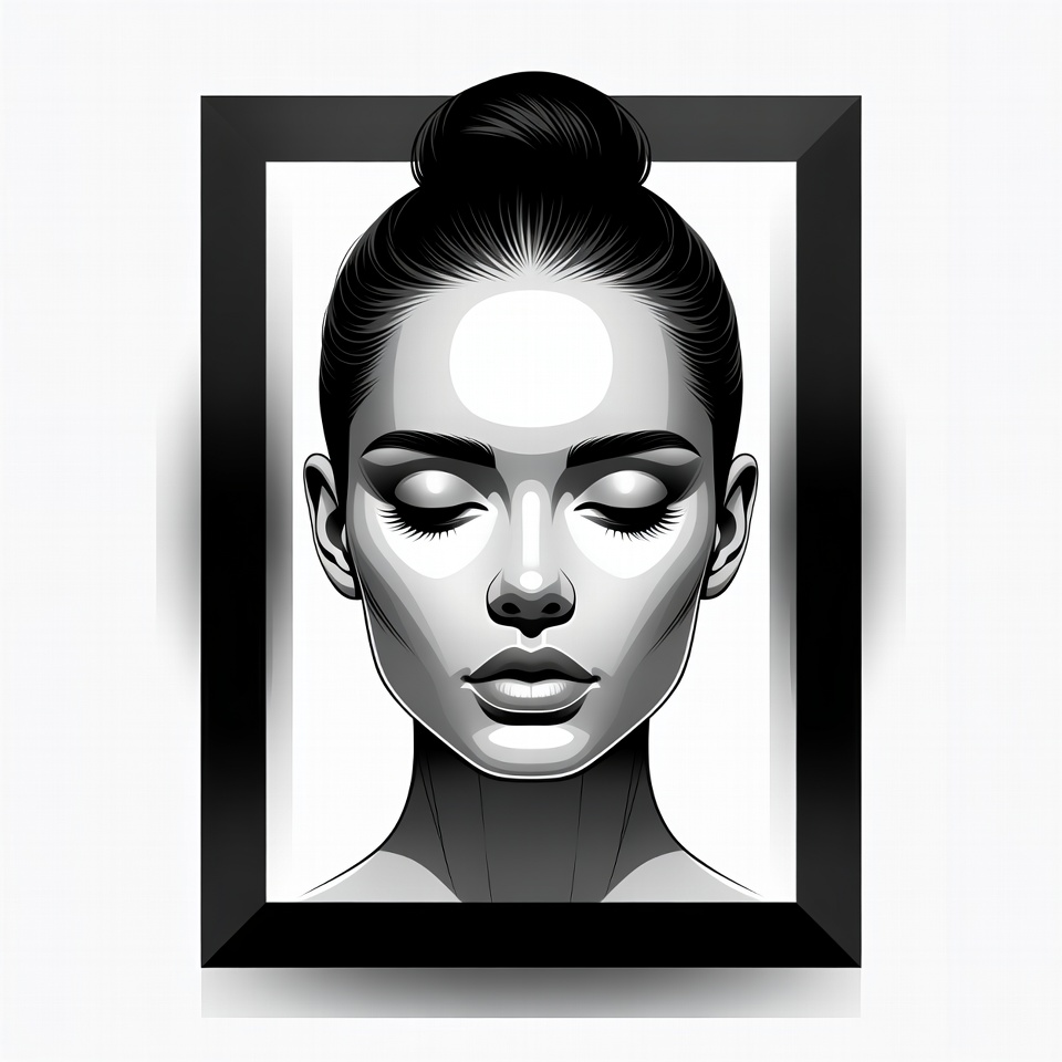art, beauty, closed eyes, design, drawing, elegance, expression, face, features, framed, graphic, hairstyle, illustration, minimalism, modern, outline, portrait, simple, style, woman
