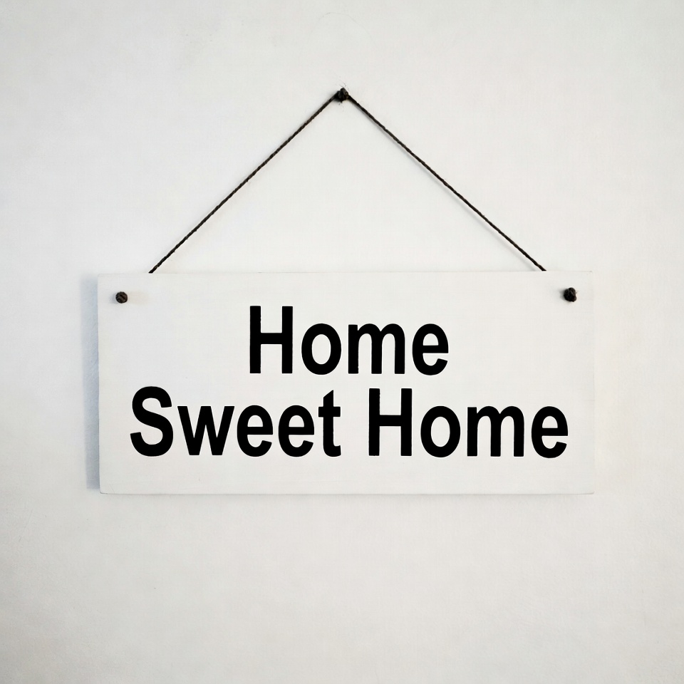 A simple sign hangs on a wall that says Home Sweet Home. This sign adds a warm touch to the living area, inviting people inside.