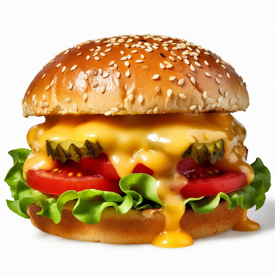 bun, burger, cheese, cooking, dinner, eating, fast food, flavorful, food, fresh, ingredients, kitchen, lettuce, lunch, meal, pickles, preparation, snack, tasty, tomato