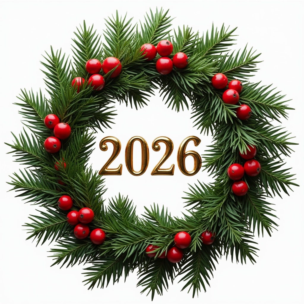 2026, adornment, arrangement, berries, celebration, decoration, design, festive, green, holiday, home, leaves, nature, ornament, plant, red, round, seasonal, wreath, year