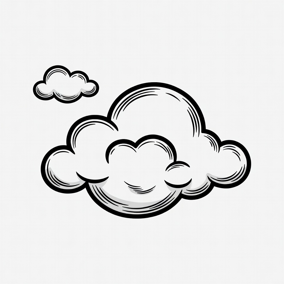 Two clouds are drawn in a simple style. The smaller cloud is above the larger one. The clouds have a sketched outline without color.