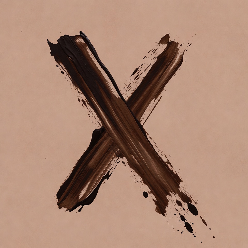 Two thick brown paint strokes cross each other on a light background. The strokes create a bold and striking design element for creative projects.
