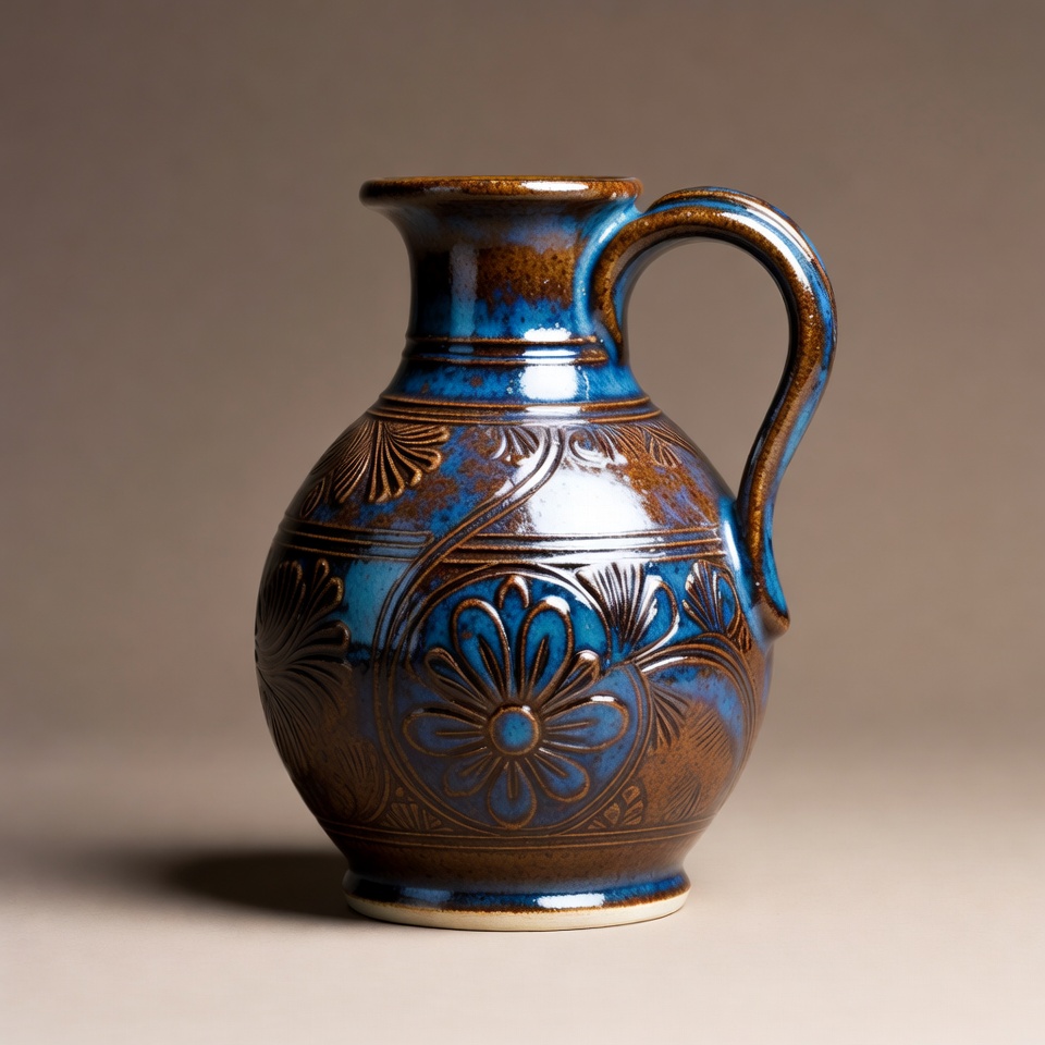 art, artisan, artwork, blue, brown, ceramic, container, craft, decorative, design, floral, handmade, home, jug, kitchen, pottery, studio, surface, traditional, vessel
