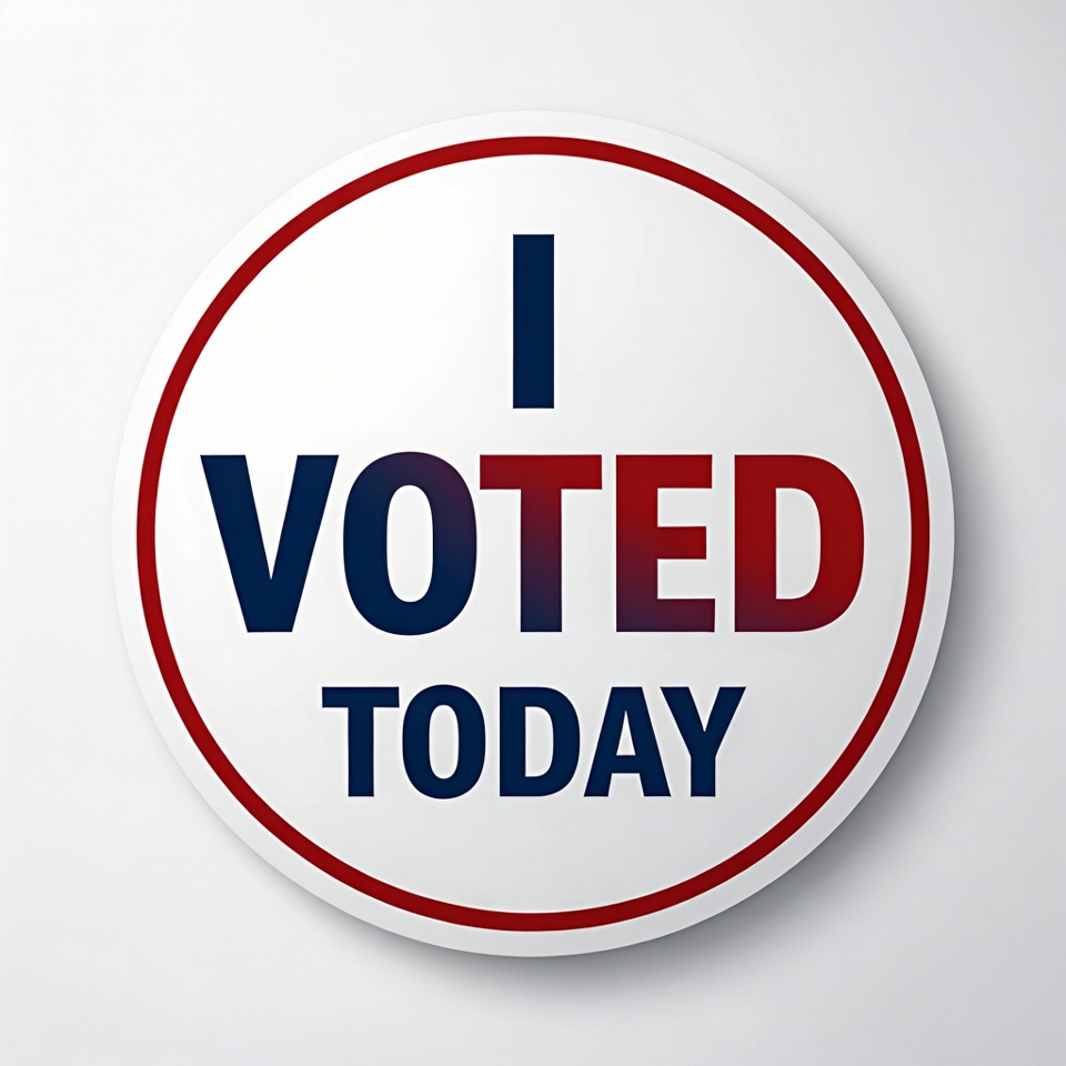 A voting sticker shows the message I Voted Today. It is circular with red and blue colors. The sticker is often worn after casting a vote.