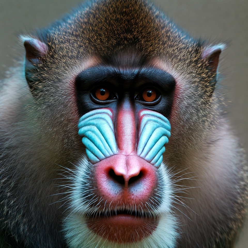 animal, baboon, close-up, colorful, detail, environment, expression, eyes, face, features, furry, markings, monkey, nature, portrait, primate, stillness, wild, wildlife, zoo